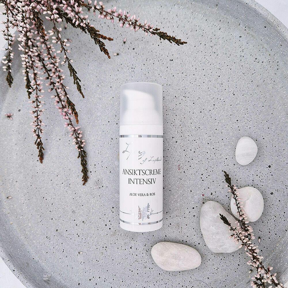 Aloe Barbadensis Leaf Extract**; aqua (aloe vera) Simmondsia Chinensis Seed Oil** (jojobaolja) Brassica Napus Seed Oil** (rapsolja) Rosa Damascena Flower water** (rosenblomsvatten) Glycerin** (fuktbindare) Glyceryl Stearate Citrate, Ceterayl Alcohol* (emulgering) Butyrospermum Parkii Butter** (sheasmör) Cetyl Alcohol* (stabilisering) Calluna vulgaris Flower Extract* (ljungextrakt) Sodium Anisate; Sodium Levilunate** (basilika; risstärkelse) Rosmarinus Officinalis Leaf Extract** (rosmarin antioxidant) Tocopherol; Helianthuus Annuus Seed Oil** (E-vitamin) Parfum**; linalool, citronellol (eterisk oljeblandning) Glyceryl Caprylate** (mjukgörande ämne från kokos) Xanthan Gum* (stabilisering) Lactic Acid* (mjölksyra)